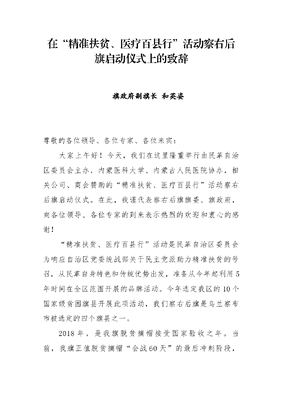 在“精准扶贫、医疗百县行”活动察右后旗启动仪式上的致辞.docx