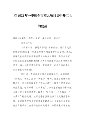 在2022年一季度全市重大项目集中开工上的致辞.docx