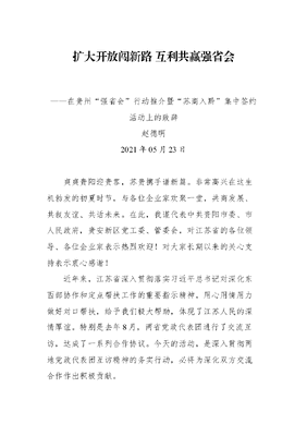 在贵州“强省会”行动推介暨“苏商入黔”集中签约活动上的致辞.docx