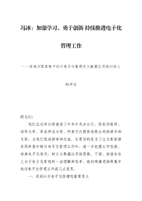 在地方国库集中收付电子化管理及大数据应用培训班上的讲话.docx