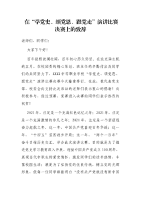在“学党史、颂党恩、跟党走”演讲比赛决赛上的致辞.docx