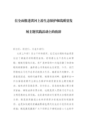 在全面推进黄河上游生态保护和高质量发展主题实践活动上的致辞.docx