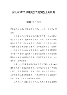 在北京2022年冬奥会欢迎宴会上的致辞.docx