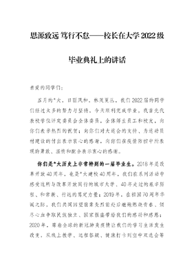 思源致远 笃行不怠——校长在大学2022级毕业典礼上的讲话.docx