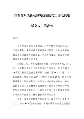 在教育系统新冠肺炎疫情防控工作电视电话会议上的致辞.docx
