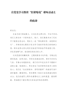 在党史学习教育“红歌嘹亮”歌咏活动上的致辞.docx