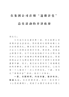 在集团公司首期“道德讲堂”总堂活动的开讲致辞.docx