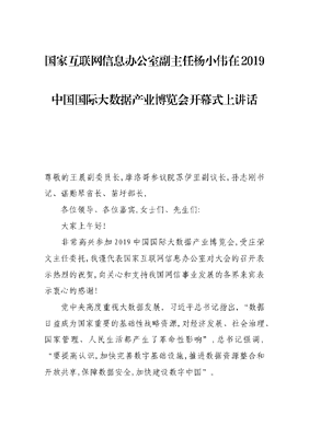国家互联网信息办公室副主任杨小伟在2019中国国际大数据产业博览会开幕式上讲话.docx