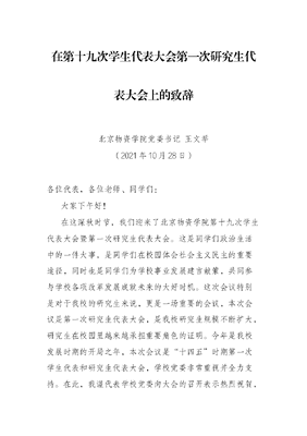 在第十九次学生代表大会第一次研究生代表大会上的致辞.docx
