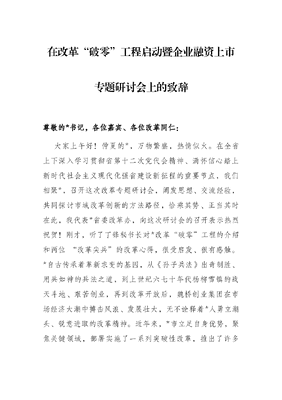 在改革“破零”工程启动暨企业融资上市专题研讨会上的致辞.docx