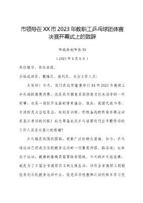 市领导在XX市2023年教职工乒乓球团体赛决赛开幕式上的致辞.docx