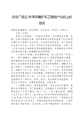 在电厂成立30周年暨扩机工程投产仪式上的致词.docx