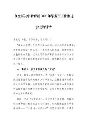 在全区初中教育暨2022年毕业班工作推进会上的讲话.docx
