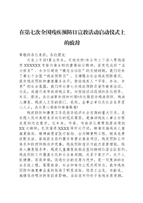 在第七次全国残疾预防日宣教活动启动仪式上的致辞.docx