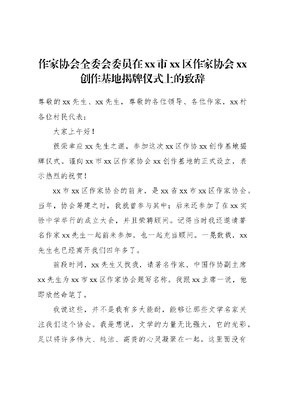 作家协会全委会委员在xx市xx区作家协会xx创作基地揭牌仪式上的致辞.docx
