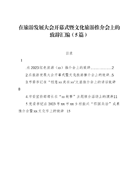 (5篇)在旅游发展大会开幕式暨文化旅游推介会上的致辞汇编.docx