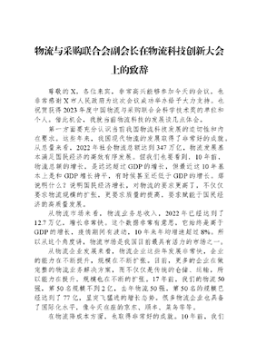 物流与采购联合会副会长在物流科技创新大会上的致辞.docx
