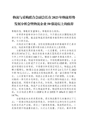 物流与采购联合会副会长在2023年物流形势发展分析会暨物流企业50强论坛上的致辞.docx