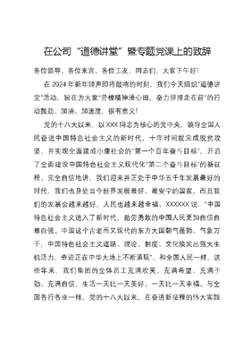 在公司“道德讲堂”暨专题党课上的致辞.docx