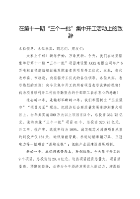 在第十一期“三个一批”集中开工活动上的致辞.docx