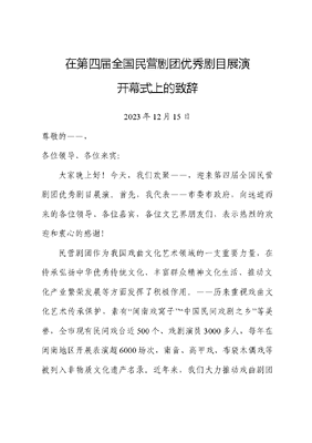 在全国民营剧团优秀剧目展演开幕式上的致辞.doc