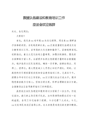救援队伍建设和教育培训工作座谈会欢迎致辞.doc
