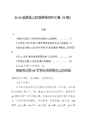 (6篇)在xx奖颁奖上的致辞等材料汇编.docx