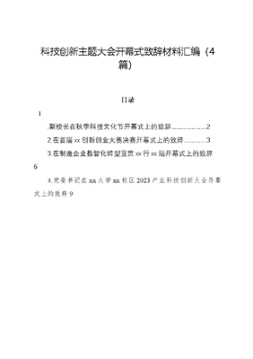 (4篇)科技创新主题大会开幕式致辞材料汇编.docx