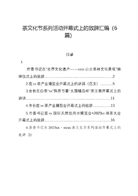 (6篇)茶文化节系列活动开幕式上的致辞汇编.docx