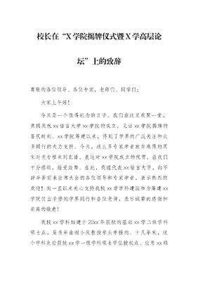 校长在“X学院揭牌仪式暨X学高层论坛”上的致辞.docx