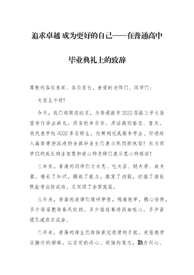 追求卓越 成为更好的自己——在普通高中毕业典礼上的致辞.docx