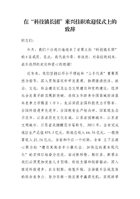在“科技镇长团”来兴挂职欢迎仪式上的致辞.docx