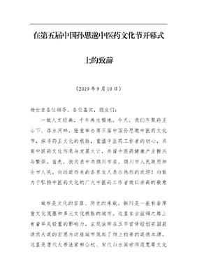 在第五届中国孙思邈中医药文化节开幕式上的致辞.docx