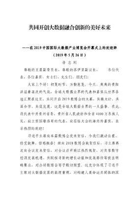在2019中国国际大数据产业博览会开幕式上的欢迎辞.docx