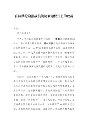 在抗洪抢险指战员凯旋欢迎仪式上的致辞.docx