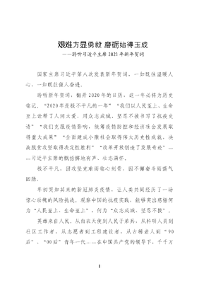 艰难方显勇毅 磨砺始得玉成 ——聆听习近平主席2021年新年贺词.doc