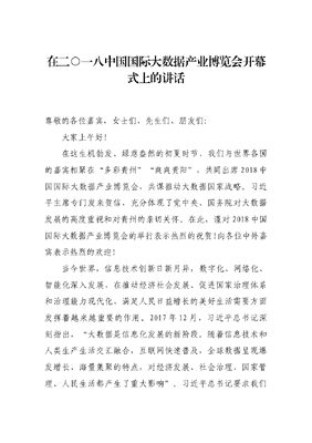 在中国国际大数据产业博览会开幕式上的讲话.docx