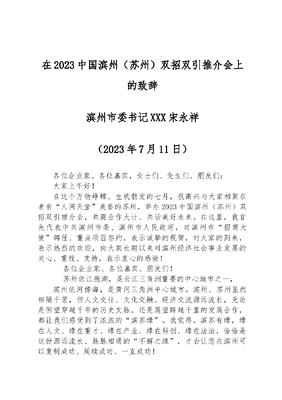 在2023中国滨州(苏州)双招双引推介会上的致辞.docx