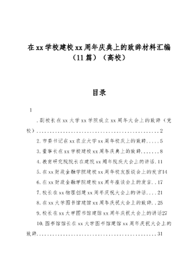(11篇)在xx学校建校xx周年庆典上的致辞材料汇编(高校).docx