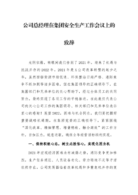 公司总经理在集团安全生产工作会议上的致辞.docx