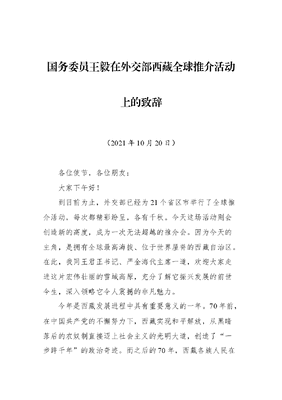 国务委员王毅在外交部西藏全球推介活动上的致辞.docx