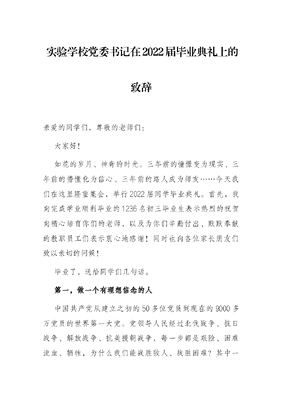 实验学校党委书记在2022届毕业典礼上的致辞.docx