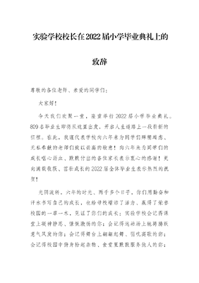 实验学校校长在2022届小学毕业典礼上的致辞.docx