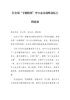 在全国“专精特新”中小企业高峰论坛上的致辞.docx