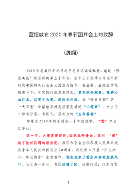 2021新年致辞如何写?娄勤俭、杜家豪、蓝绍敏、宋朝华等“大笔杆子”10篇经典.doc
