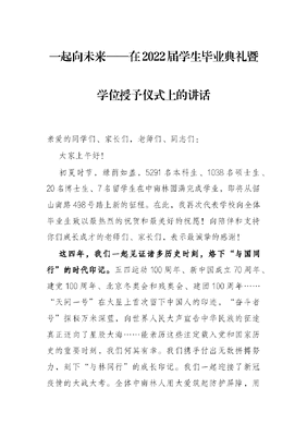 一起向未来——在2022届学生毕业典礼暨学位授予仪式上的讲话.docx