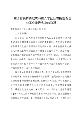 淮北市委书记黄晓武在全省扶持高层次科技人才团队在皖创新创业工作推进会上的致辞.doc