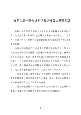 第十二届全国政协副主席马培华在第二届中国交通科技发展峰会上领导致辞.doc