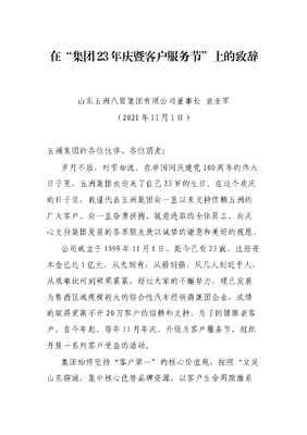 在“集团23年庆暨客户服务节”上的致辞.docx