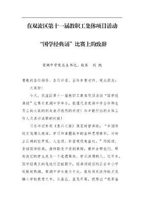 在教职工集体项目活动“国学经典诵”比赛上的致辞范文.docx